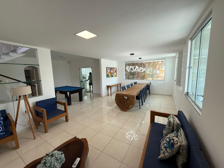 A casa dispõe de 5 dormitórios, sendo 2 suítes, proporcionando privacidade e conforto para todos. Os 5 banheiros, elegantemente projetados, atendem às necessidades do dia a dia com praticidade. As 2 salas convidam a momentos de descontração e convívio social.